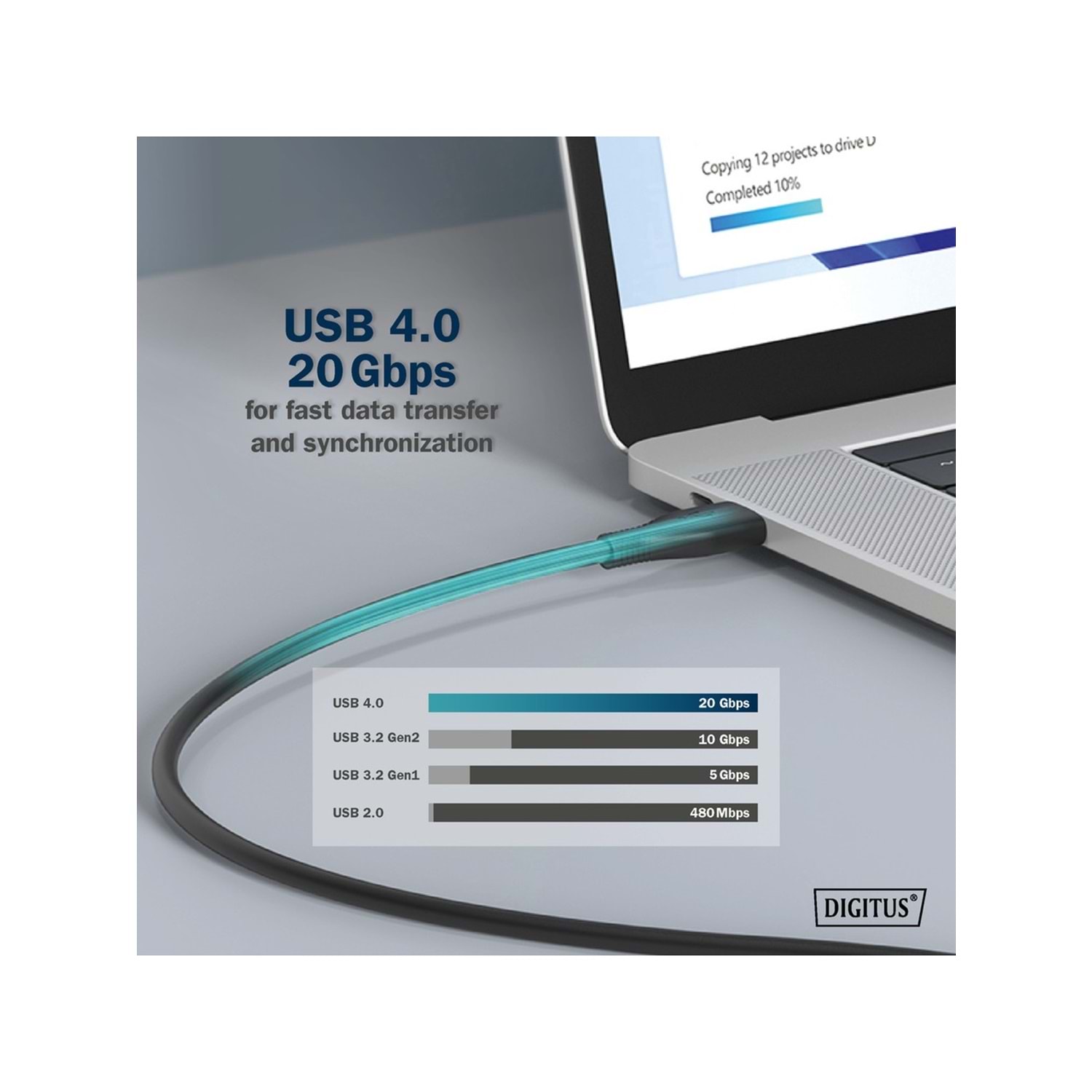 USB 3.2 Gen 2x2 standardını destekleyen bu kablo, 20 Gbps'ye varan inanılmaz veri transfer hızı sunar. Bu hız, büyük dosyaları (4K/8K video projeleri, oyun dosyaları) saniyeler içinde aktarmanızı, harici SSD'lerinizi maksimum performansta kullanmanızı sağlar. Geleneksel USB 3.0 kablolara göre veri aktarım sürelerinde büyük bir azalma sağlar.
