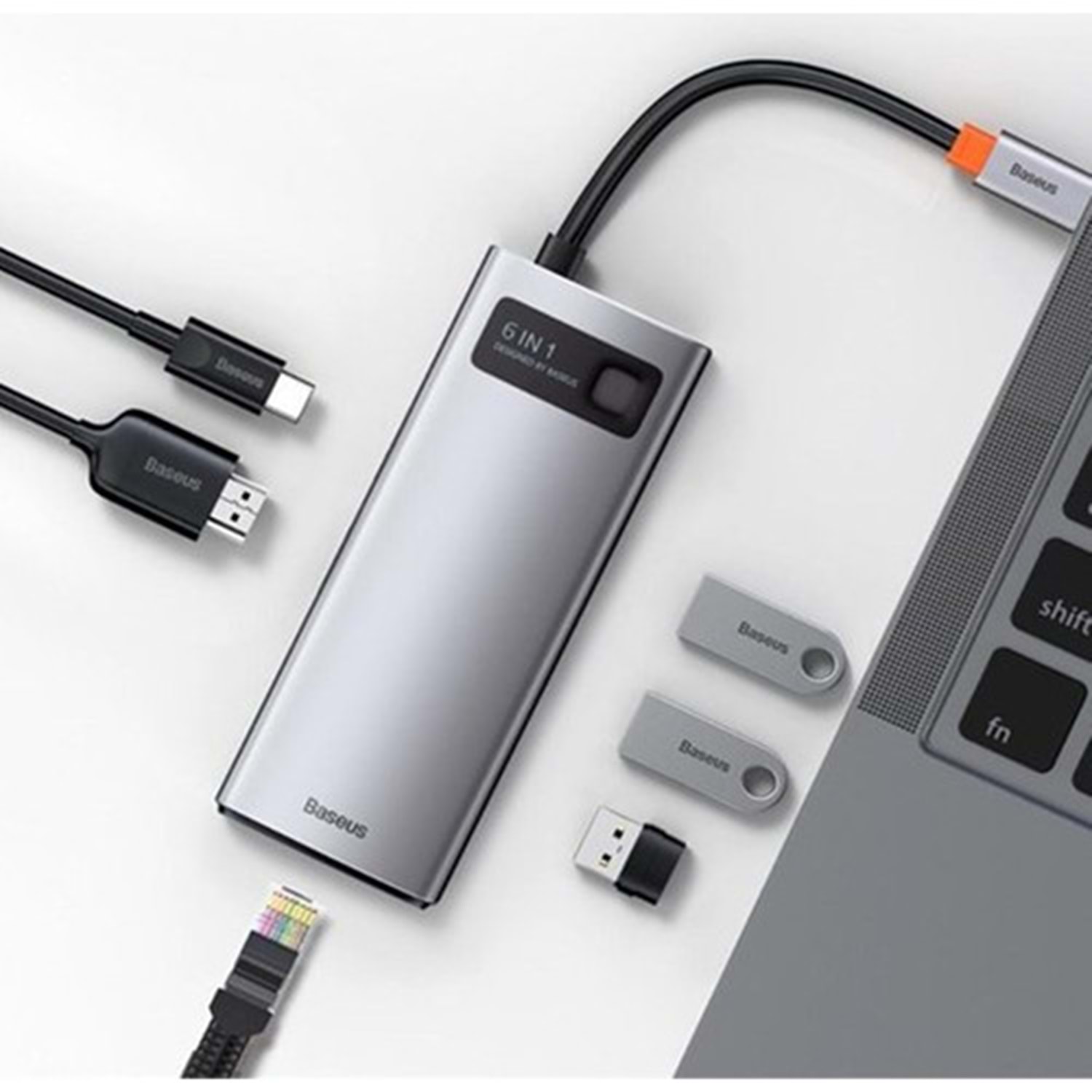 Baseus CAHUB-CW0G, metal gövdesi ile dikkat çeken şık ve dayanıklı bir tasarıma sahiptir. Bu 6 in 1 hub dock station, masaüstünüzü düzenlemenin yanı sıra geniş bağlantı seçenekleri ile çok yönlü kullanım imkanı sunar.