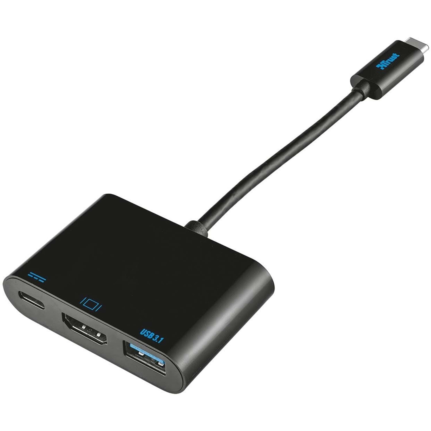 TRUST 21260, USB Type-C portlu cihazlar için tasarlanmış, HDMI, USB 3.0 ve SD/microSD kart okuyucuyu tek bir ünitede birleştiren kapsamlı bir multiport adaptördür. Taşınabilir bir bağlantı istasyonu olarak çalışarak üretkenliğinizi artırır.