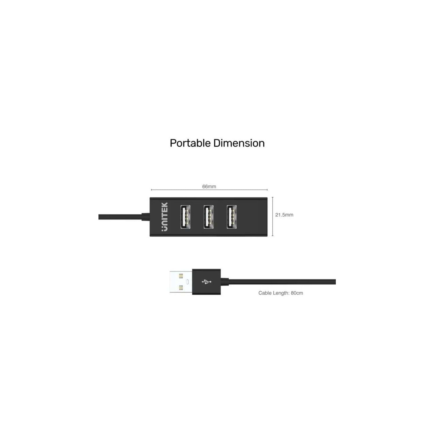 UNITEK Type-A to 4 Port USB 2.0 Hub – 80 cm Kablo – Y-2140