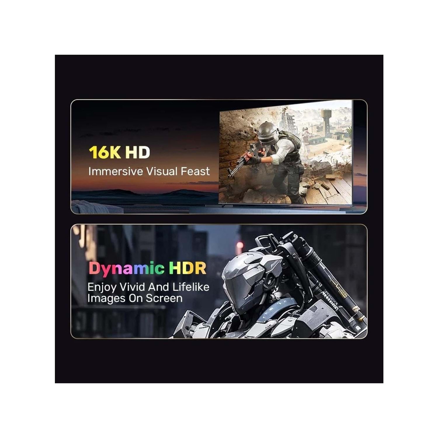 - Çözünürlük Desteği: 16K@60Hz, 8K@120Hz, 4K@240Hz ve altı