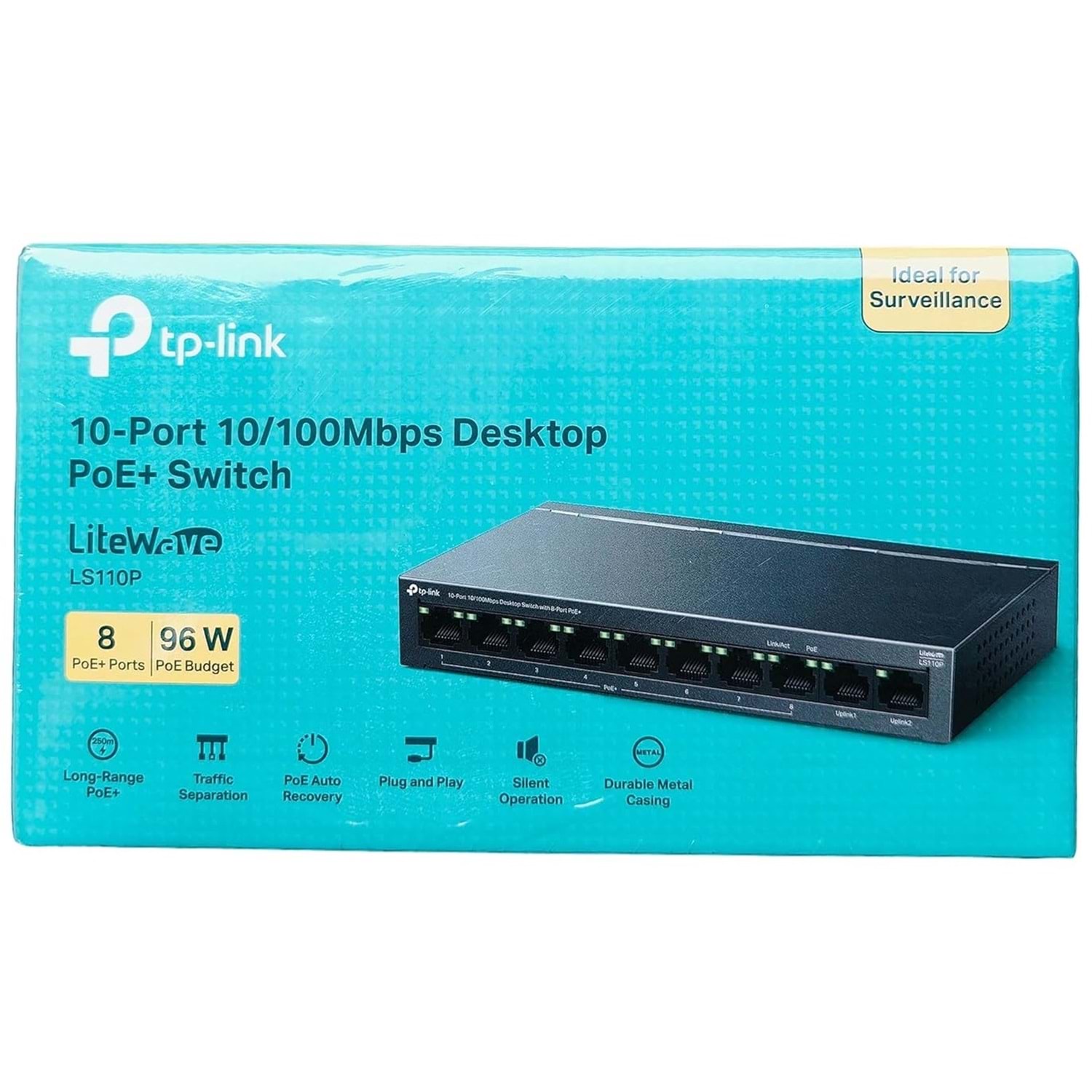 TP-Link LS110P, 8 PoE+ portu ve 2 uplink portuyla hem veri hem güç sağlayan, ev ve ofisler için ideal, kompakt bir masaüstü switch’tir.