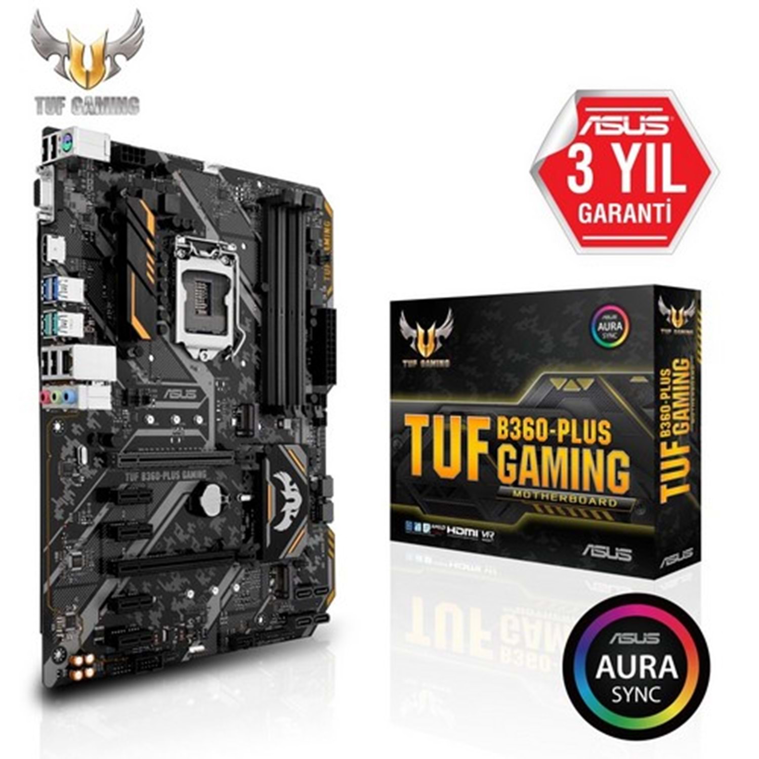 Asus TUF B360-PLUS GAMING, Intel'in 8. ve 9. nesil Core işlemcileriyle uyumlu, dayanıklı ve yüksek performanslı bir anakarttır. B360 yonga seti ile veri aktarımı hızlı ve verimli olur. DDR4 bellek desteğiyle güçlü bir performans sunar. HDMI ve DVI çıkışlarıyla yüksek çözünürlükte görüntüleme sağlar. PCIe 3.0 x16 yuvası, grafik kartları için yeterli genişletilebilirlik sunar. Kompakt ATX form faktörüyle masaüstü bilgisayarlar için idealdir.