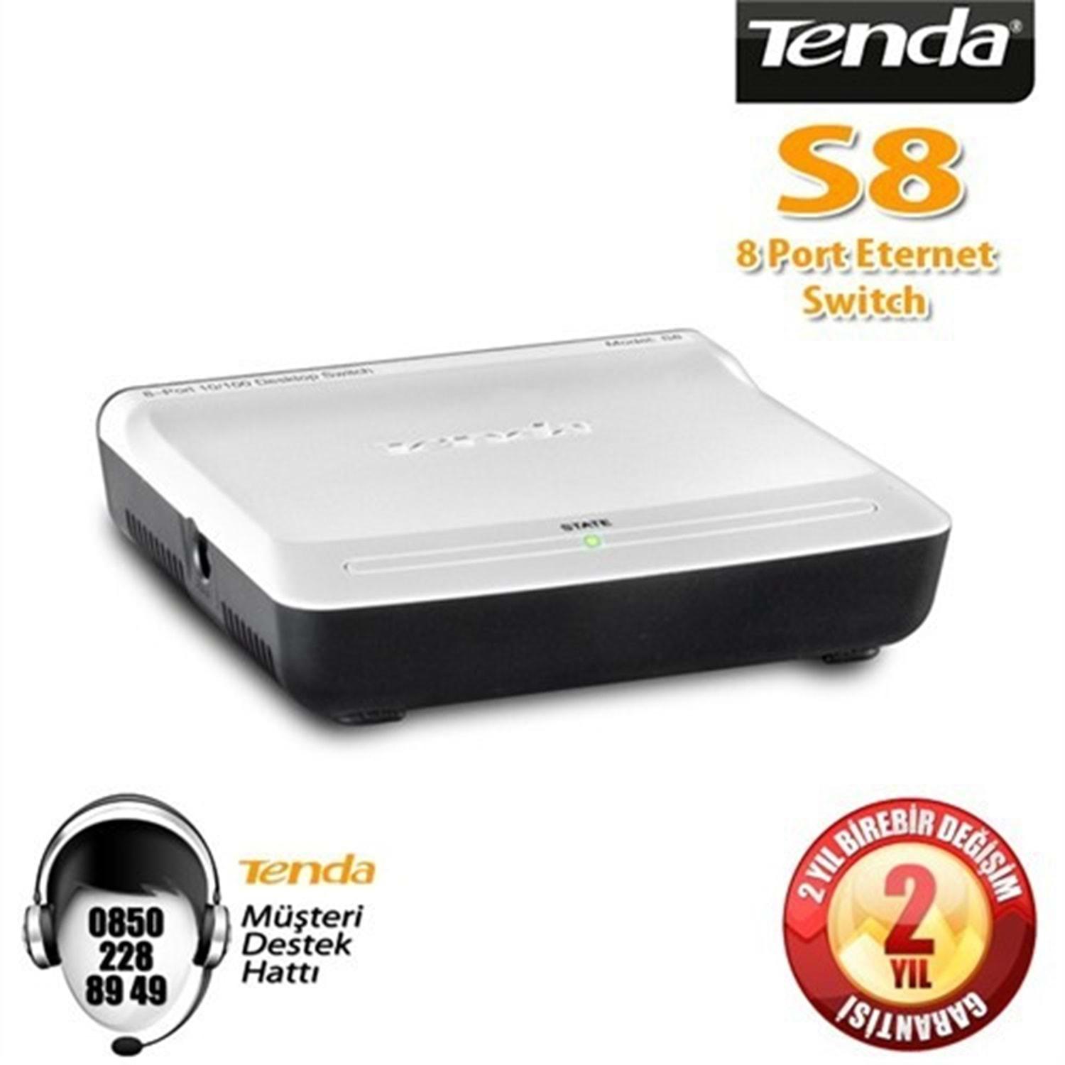 Yüksek Performanslı ve Şık Tasarım: Tenda S8 8 Port 10/100Mbps Masaüstü Switch