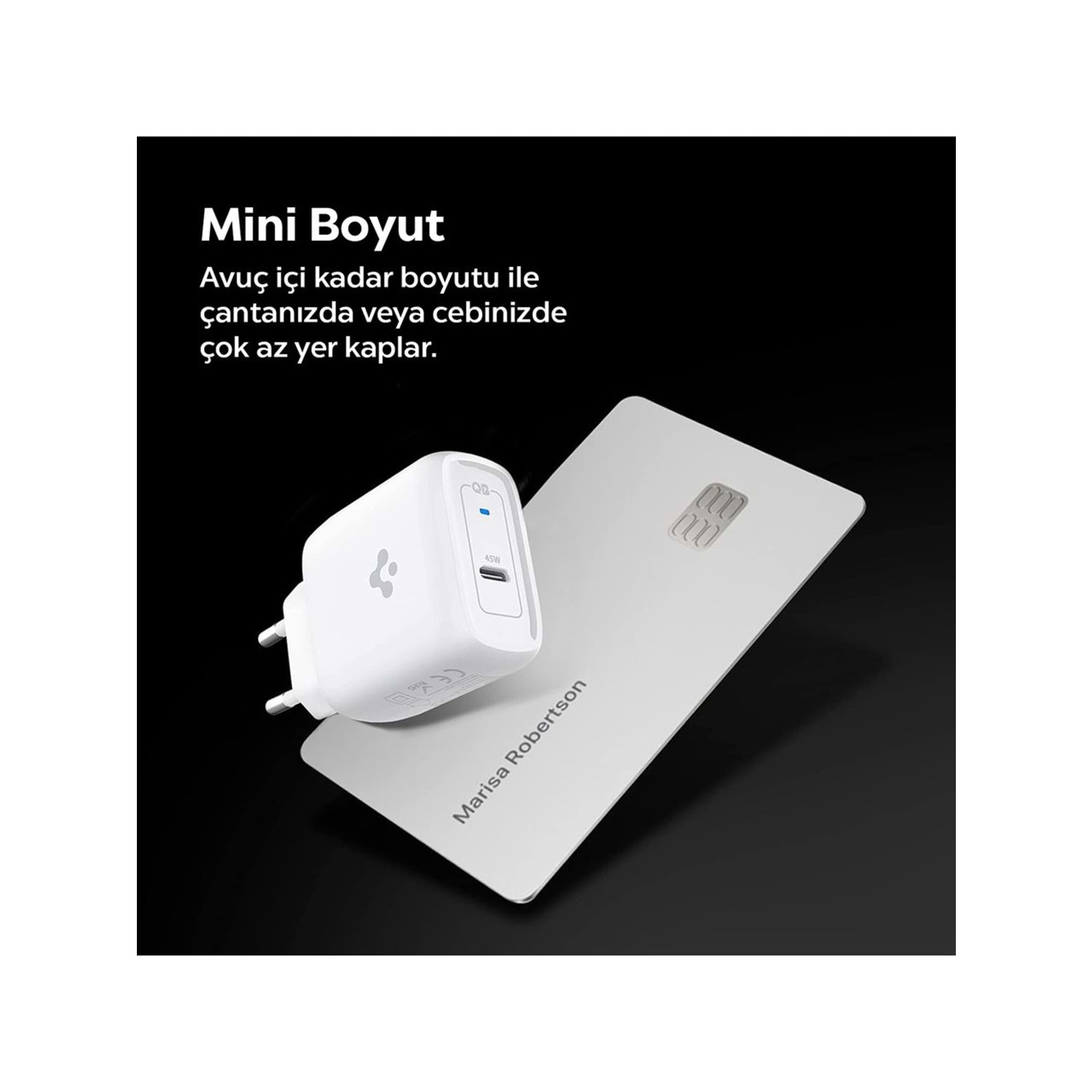 - Portlar: 1x USB-C PD, 1x USB-A QC