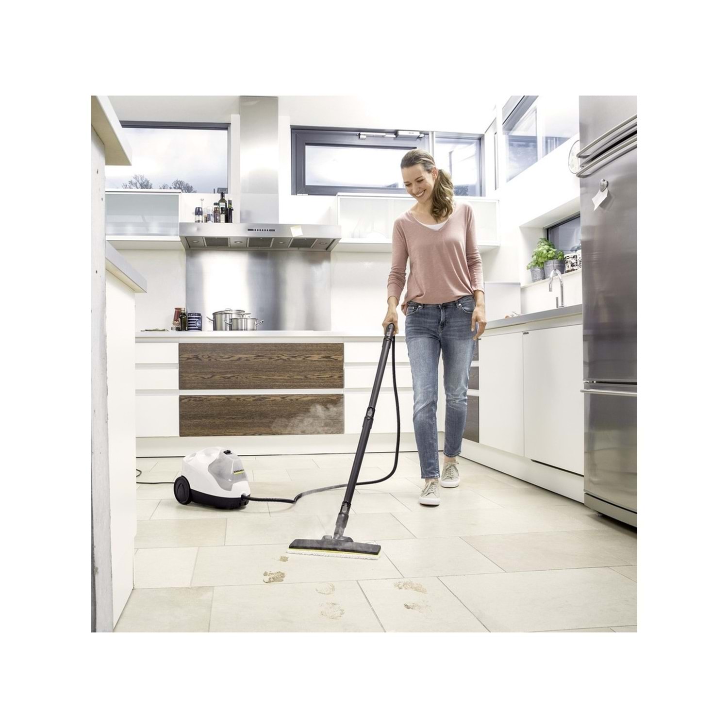 SC 4 modeli, 3.5 bar buhar basıncı ile inatçı kirleri kolayca söker. Ayrılabilir su tankı sayesinde cihaz çalışırken bile su eklemesi yapılabilir, böylece kesintisiz temizlik mümkün hale gelir. EasyFix başlık sistemi ile mikrofiber bez kolayca takılıp çıkarılır.