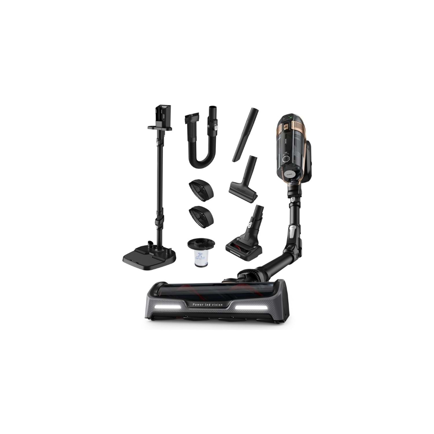 - Aksesuarlar: Evcil Hayvan Turbo Fırçası, Mini Flex, Aralık Aparatı, Kanepe Fırçası, 2 Yumuşak Fırça, Ek Filtre, Şarj İstasyonu