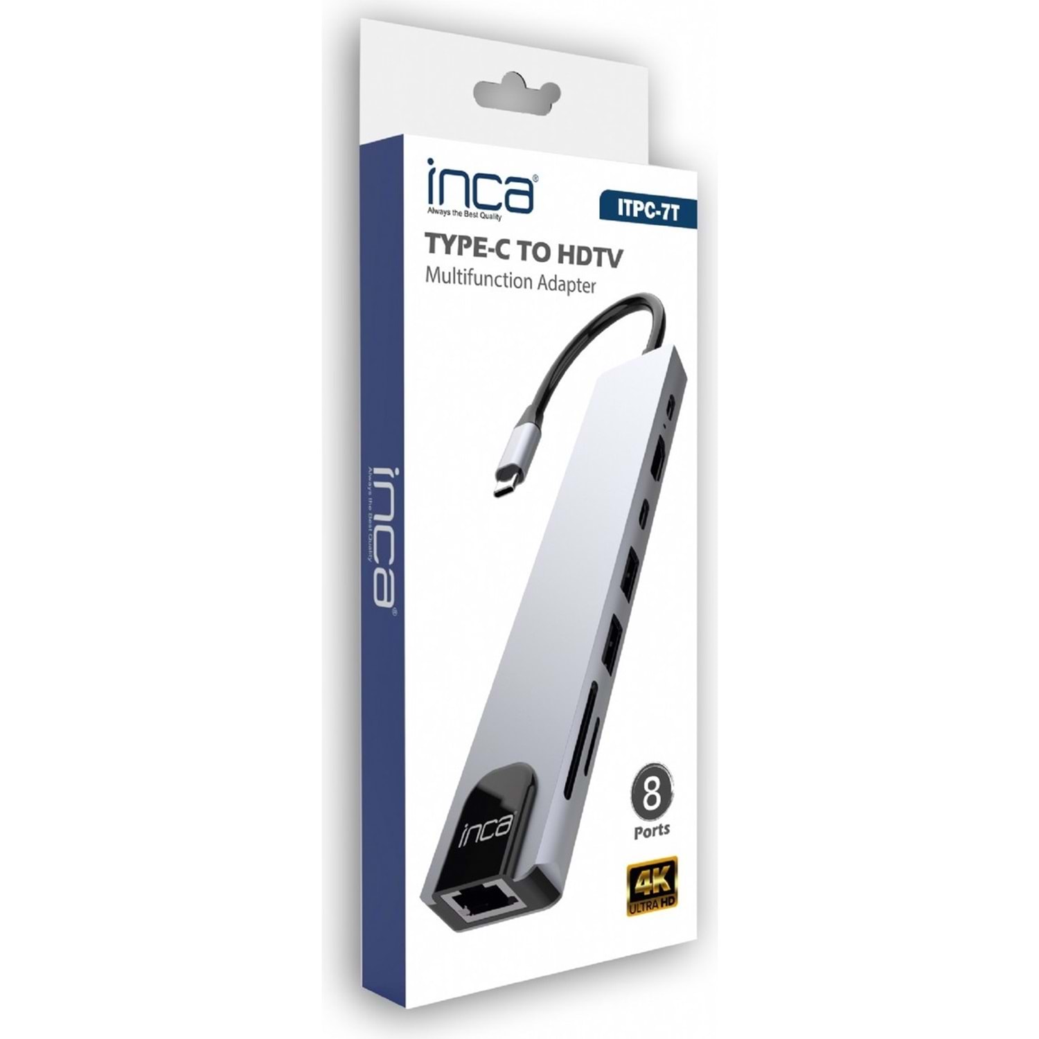 INCA ITPC-7 TYPE-C HUB X8COMBO, modern ince dizüstü bilgisayarların sınırlı bağlantı portlarını genişletmek için tasarlanmış, çok yönlü ve kompakt bir USB-C bağlantılı hub/dongle cihazıdır. 8 farklı bağlantı noktası ile, tek bir USB-C portundan birden fazla cihazı ve monitörü bağlamanıza olanak tanıyarak, üretkenliği ve kullanım kolaylığını artırır.